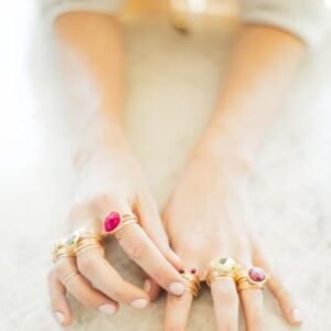 Available in your choice of wire, with a 14k gold bezel set semi-precious gemstone. These rings will vary slightly due to the individual nature of the stones which are semi-precious and unique.