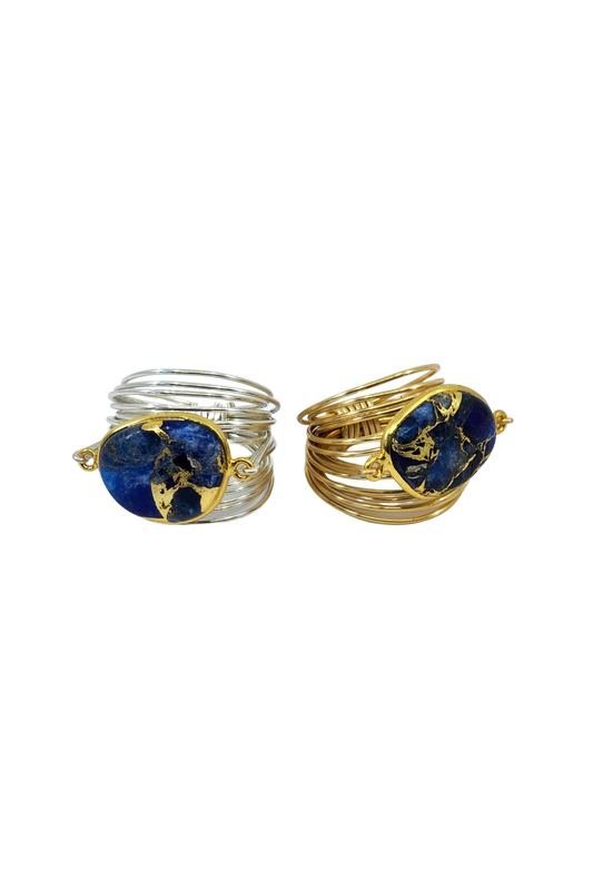 Available in your choice of wire, with a 14k gold bezel set semi-precious gemstone. These rings will vary slightly due to the individual nature of the stones which are semi-precious and unique.
