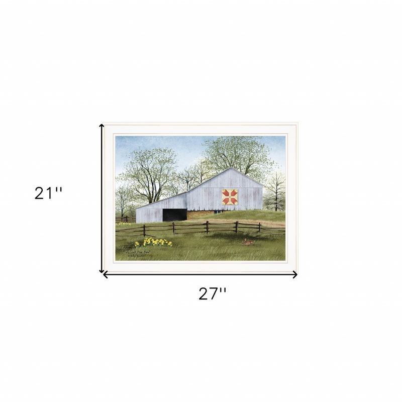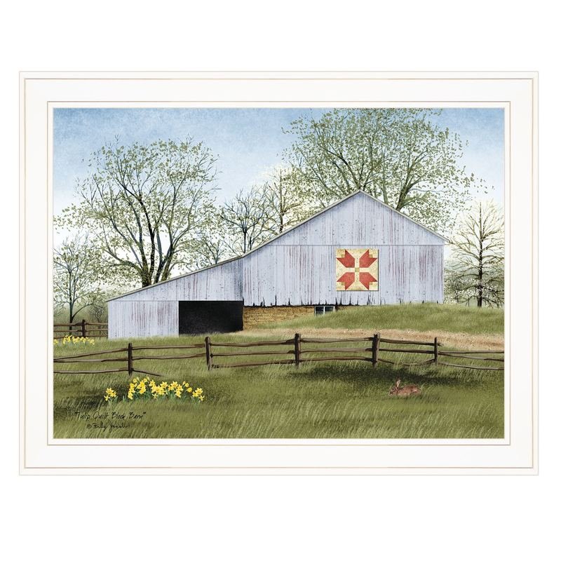 The tulip quilt block barn 3 white framed print wall art is the perfect decorative accessory for your home. This print is a visual artistic expression that allows you to decorate your space in style. Reproduced for you on paper, this hanging decorative accent will be a trendy and fashionable way to dress your walls. Adding this hanging wall art to your space to make your room feel more finished and attractive. Utilize this opportunity to create a focal point in the room with this fabulous wall decor option. 21-inch H x 27-inch W x 1-inch D