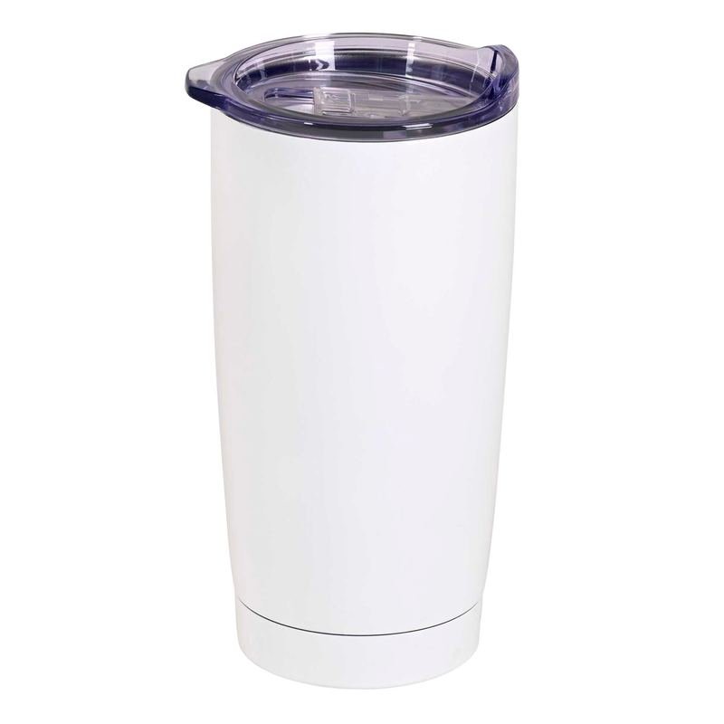 Tumbler Is 18/8 Stainless Steel Inside And Out; Finished In White On The Outside. Holds Up To 20 Ounces; Keeps Hot Drinks Hot And Cold Ones Cold For Hours. Clear Lid Includes Silicone Sealing Ring And A Sliding Mechanism To Easily Cover Or Uncover The Drink Opening. To Care For Tumbler, Hand Wash Only And Do Not Use In Microwave. Tumbler Features On The Front A Graduation Theme With Psalm 20:4: May He Give You The Desire Of Your Heart And Make All Your Plans Succeed. The Back Is Solid White.