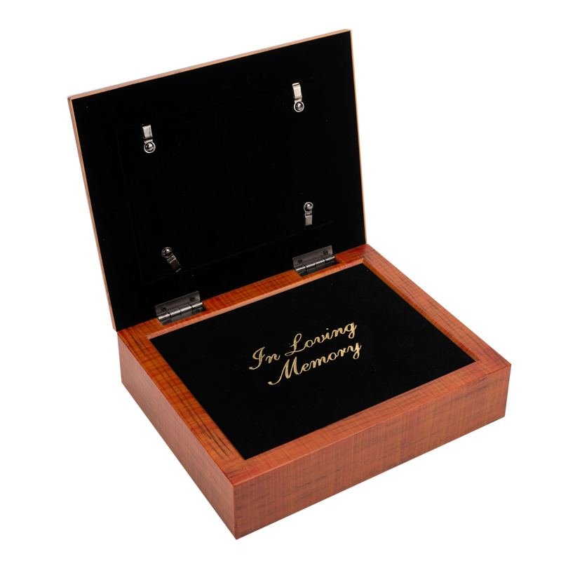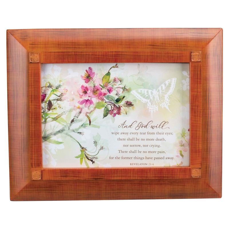 This Urn Box Is A Beautiful Resting Place For Ashes Of A Loved One. Finished On Outside In A Rich Walnut Wood Tone. Hinged Lid, With Ornate Rim, Is Also A Photo Frame. Comes With 7 x 5 Art Insert, Under Glass, With Words Of Comfort. Art Can Be Left In Place Or Easily Traded Out For A Personal Photo. Removable Back Behind Lid. When Opened, The Box Shows Black Panel Engraved In Gold With: In Loving Memory. Panel Is Not Removable. Bottom Of Box Can Be Unscrewed To Insert Bag Of Ashes; Instructions Are Attached. Capacity Is 90 Cubic Inches. Pads To Cover Screws Are Included Inside Box. Overall Box Size Is 9-5/8 x 7-3/4 x 2-1/2. Made Of A Super-Sturdy Polymer That Resists Cracking And Chipping. Art Print Features Revelation 21:4: And God Will Wipe Away Every Tear From Their Eyes; There Shall Be No More Death, Nor Sorrow, Nor Crying. There Shall Be No More Pain, For The Former Things Have Passed Away.Ingredients: Size: Color: BRN/PNKMade In: United States