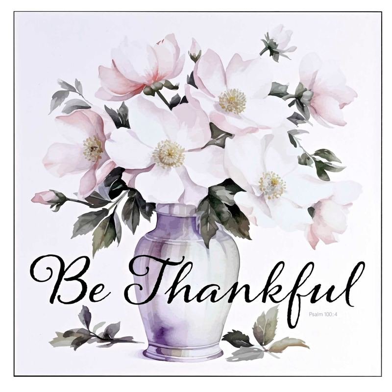 Adorn Your Dwelling With This Be Thankful Floral Charm, Inscribed With The Divine Words Of Psalm 100:4. An Exquisite Piece Of Scripture Art Crafted From MDF In A Harmonious Blend Of Green And White Hues. Measures 15X15 And Is 3/4 Inches Thick, And Finished With Black Edges.