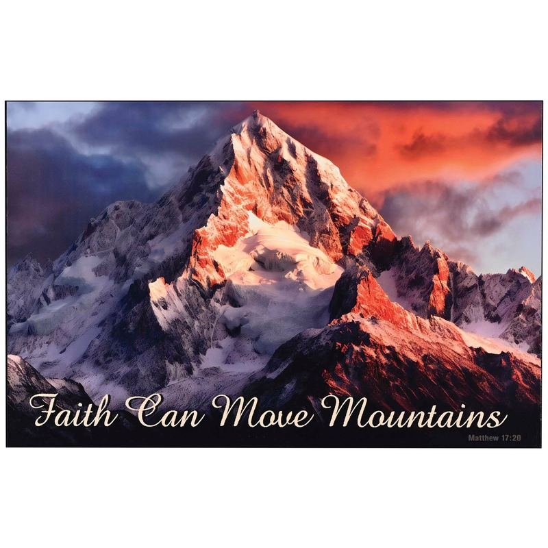 Wall Plaque Measures 20 x 13 x 3/4. A Mountain Scene Accompanies A Paraphrase Of Matthew 17:20. Edges Are Finished In Black. Made In USA Of MDF Wood. Hanging Slot In Back. Paraphrase: Faith Can Move Mountains.Ingredients: Size: Color: MultiMade In: United States