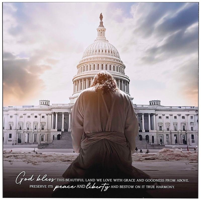 Wall Plaque Measures 15 x 15 x 3/4. Jesus Prays At The Us Capitol With Inspiring Text. Edges Are Finished In Black. Made In USA Of MDF Wood. Hanging Slot In Back. Text: God Bless This Beautiful Land We Love With Grace And Goodness From Above. Preserve Its Peace And Liberty And Bestow On It True Harmony.