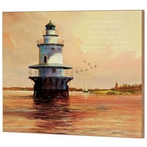 This Wall Plaque Shows A Lighthouse Scene, Along With John 8:12: When Jesus Spoke Again To The People, He Said, I Am The Light Of The World.