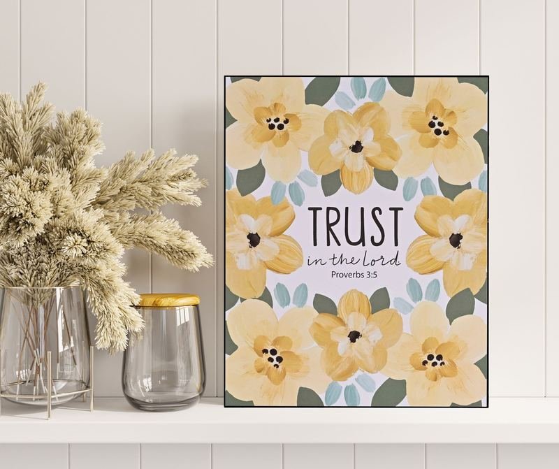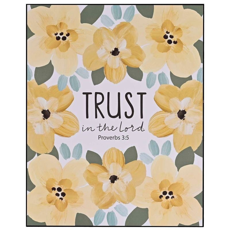 This Wall Plaque Features A Floral Border Around Proverbs 3:5: Trust In The Lord. Plaque Measures 7-7/8 X 3/4 X 9-1/2. Hanging Slot On Back. Made Of MDF Wood With Black Edges. Blue Chair Blessings Copyright MHS Licensing. Comes Packed In A Brown Box.Ingredients: Size: Color: GRN/YLWMade In: United States