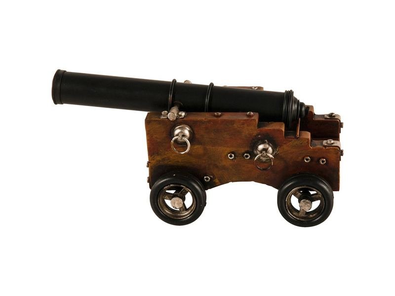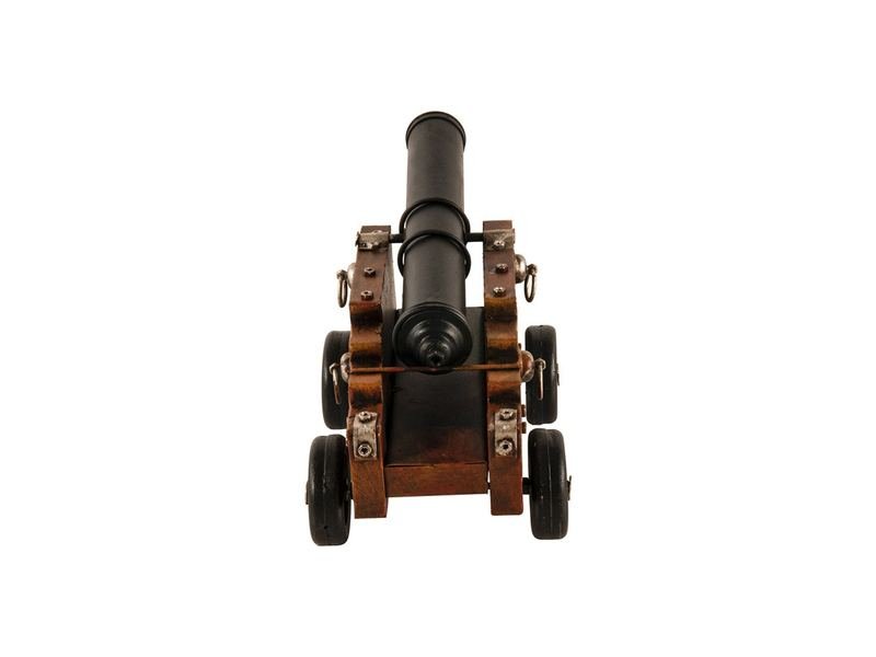 Authentic and super detailed, the Warship Canon Sculpture is a unique handmade replica of the naval canons used on warships from 1550 to 1850. It was handmade by a master craftsman in 100% metal and features unique details. It features many details as rolling wheels and chainrings. Painted in vintage green, it is a great display piece and a sought-after piece for automobile enthusiasts. 6” x 11” x 5″Ingredients: Size: Color: Made In: Vietnam