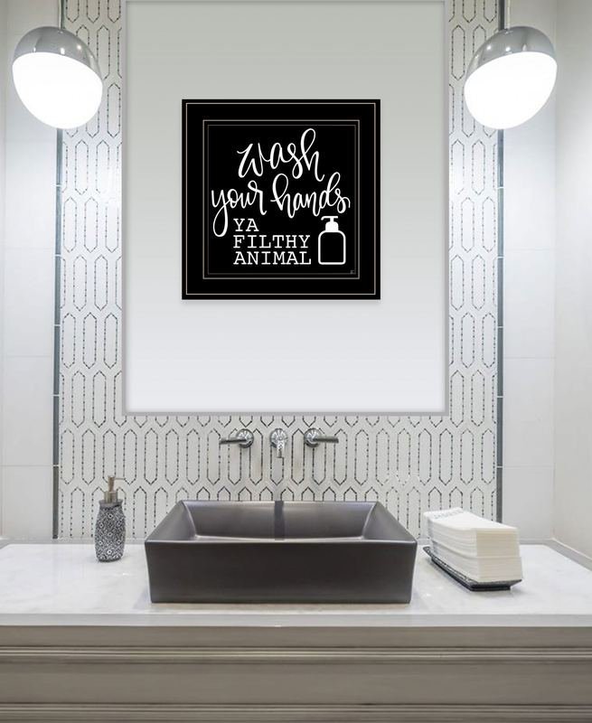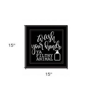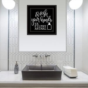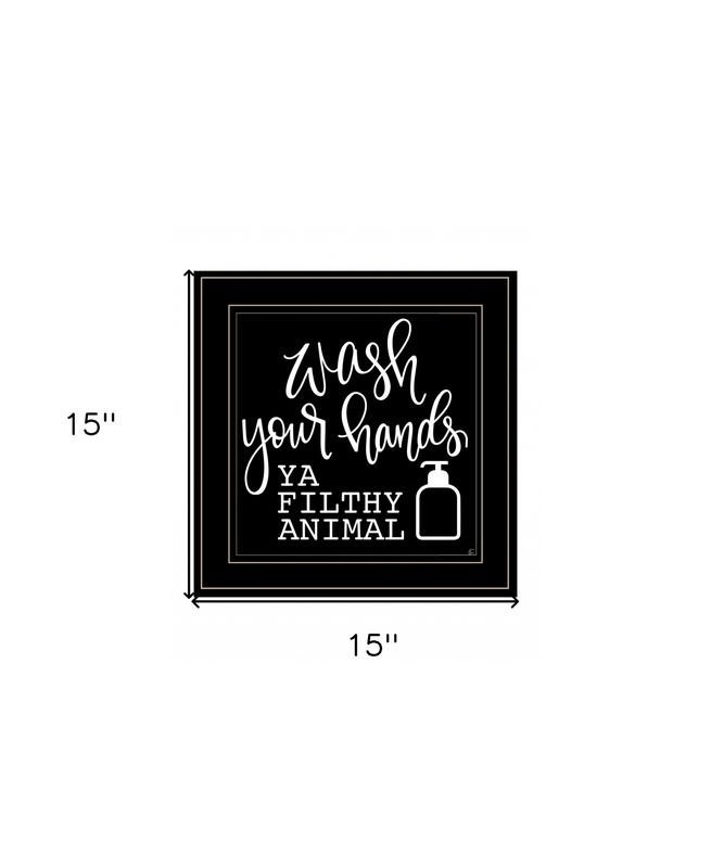Unique and decorative, this wash your hands 2 black framed print bathroom wall art will leave a lasting impression. This print is a visual artistic expression that allows you to decorate your space in style. The black and white photography style makes this photographic art appealing and gives it visual interest. Reproduced for you on wood, this hanging decorative accent will be a trendy and fashionable way to dress your walls in a rustic and modern farmhouse vibe. Adding this hanging wall art to your space to make your room feel more finished and attractive. Utilize this opportunity to create a focal point in the room with this fabulous wall decor option. 15-inch H x 15-inch W x 1-inch DIngredients: Size: Color: Made In: United States