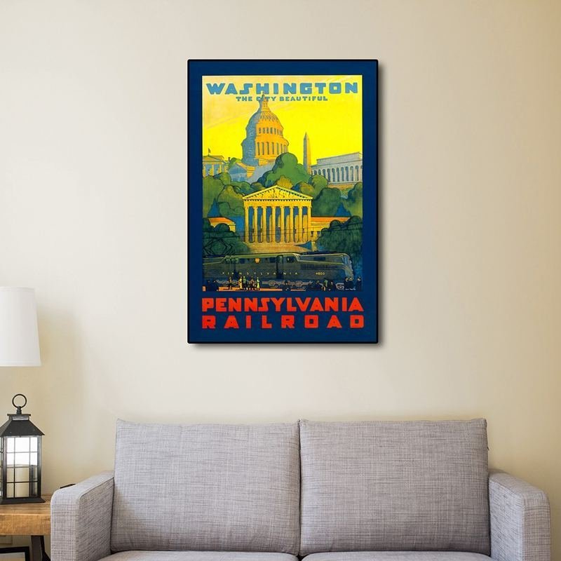 Unique and decorative, this washington dc vintage travel unframed print wall art will leave a lasting impression. This print is a visual artistic expression that allows you to decorate your space in style. Unframed, this flat poster art has a fresh and distinct taste to grace your walls with style. Reproduced for you on paper, this hanging decorative accent will be a trendy and fashionable way to dress your walls. Adding this hanging wall art to your space to make your room feel more finished and attractive. Utilize this opportunity to create a focal point in the room with this fabulous wall decor option. 18 inches H x 12 inches W x 0.1 inches D