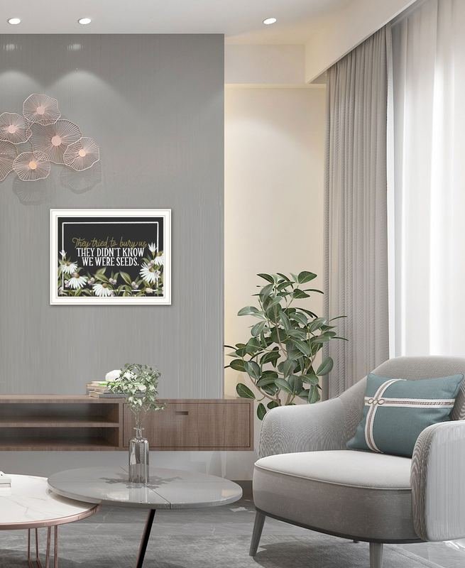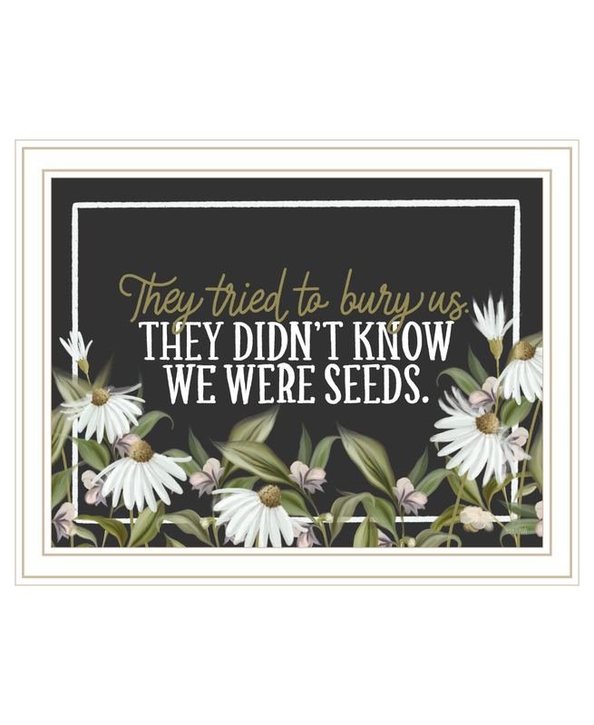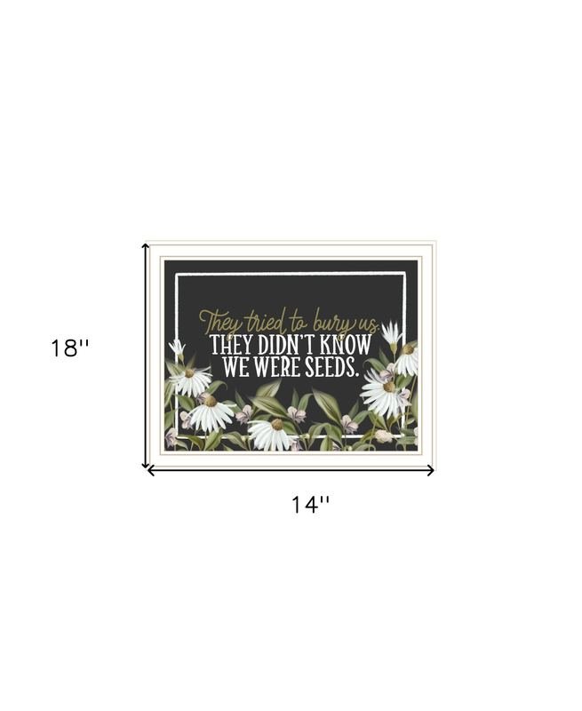 Bring some sizzle to your space with this eye-catching we were seeds white framed print wall art. This print is a visual artistic expression that allows you to decorate your space in style. Reproduced for you on wood, this hanging decorative accent will be a trendy and fashionable way to dress your walls in a rustic and modern farmhouse vibe. Adding this hanging wall art to your space to make your room feel more finished and attractive. Utilize this opportunity to create a focal point in the room with this fabulous wall decor option. 14-inch H x 18-inch W x 1-inch D