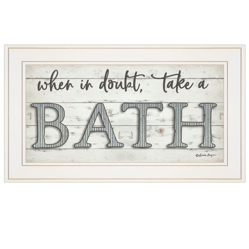 This when in doubt take a bath 2 white framed print bathroom wall art will add a beautiful decorative accent to your decor. This print is a visual artistic expression that allows you to decorate your space in style. Reproduced for you on paper, this hanging decorative accent will be a trendy and fashionable way to dress your walls. Adding this hanging wall art to your space to make your room feel more finished and attractive. Utilize this opportunity to create a focal point in the room with this fabulous wall decor option. 12-inch H x 21-inch W x 1-inch DIngredients: Size: Color: Made In: United States