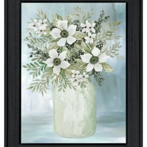 Unique and decorative, this white blooms black framed print wall art will leave a lasting impression. This print is a visual artistic expression that allows you to decorate your space in style. Reproduced for you on wood, this hanging decorative accent will be a trendy and fashionable way to dress your walls in a rustic and modern farmhouse vibe. Adding this hanging wall art to your space to make your room feel more finished and attractive. Instantly liven up your space with this art that brings color and dimension to your walls. 19-inch H x 15-inch W x 1-inch D