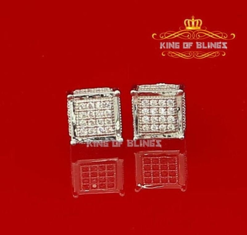White Gold Finish W/Lab Created Diamonds Square Men’s Stud Earrings
