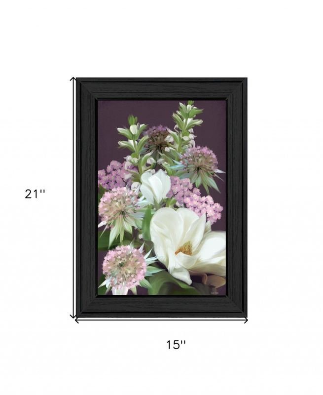 Bring some sizzle to your space with this eye-catching wild for plum bouquet 3 black framed print wall art. This print is a visual artistic expression that allows you to decorate your space in style. Reproduced for you on wood, this hanging decorative accent will be a trendy and fashionable way to dress your walls in a rustic and modern farmhouse vibe. Hang on your wall to add some up to date fashion and decoration. Instantly liven up your space with this art that brings color and dimension to your walls. 21-inch H x 15-inch W x 1-inch D