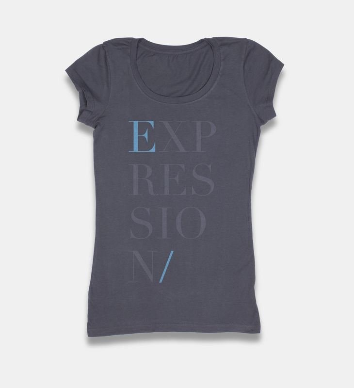 This classic design tee comes in charcoal gray, with blue accents in our signature typography.