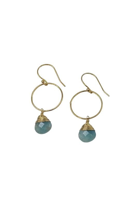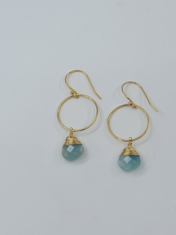 An elegant gold vermeil hoop with a gold hand-wrapped Aquamarine.