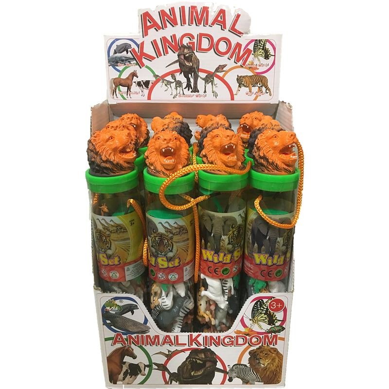 Classic zoo animal figurines! This adorable tube includes 15 animal figurines in it and x3 landscape pieces (trees and rock). To put this item a head above similar tubes we have a Roaring Lion Head top on the tube!